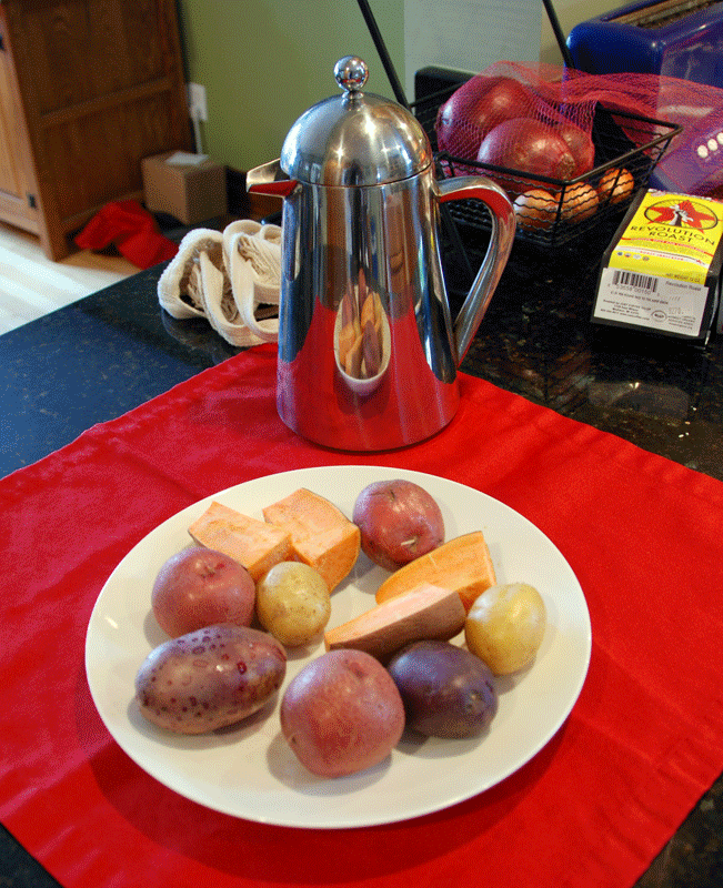 Potatoes of several varieties from Butter Mountain and sweet potatoes from Don’s Produce.