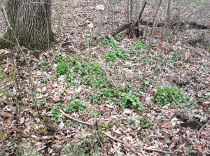 Two years ago, while striding up through the woods to the top of our land, my eye fell on some delicate white-petaled flowers growing in the shelter of our biggest oak. I hadn’t noticed them before so I leaned over and looked closer. Then I swore.