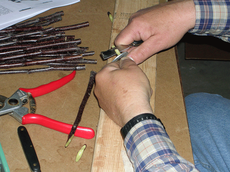 Each spring, Ken offers a class in apple grafting and lets the participants pick from among his many varieties. Crammed in a narrow basement room under the old farm house with about 20 other eager orchardist wanna-bes I learned a ton at the four-hour class taught by Wally Marks, Ken’s friend and fellow apple enthusiast.