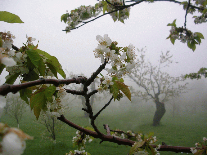 That picture of the apple blossoms in the mists is just lovely. I love springtime. My favorite antique apple I’ve tasted was at the Madison Farmer’s market called a “strawberry” apple. I cannot remember the name of the stand but they were set up in one of the corners.