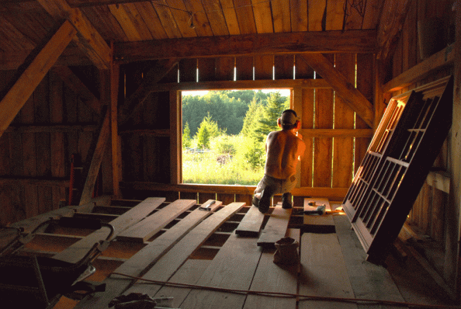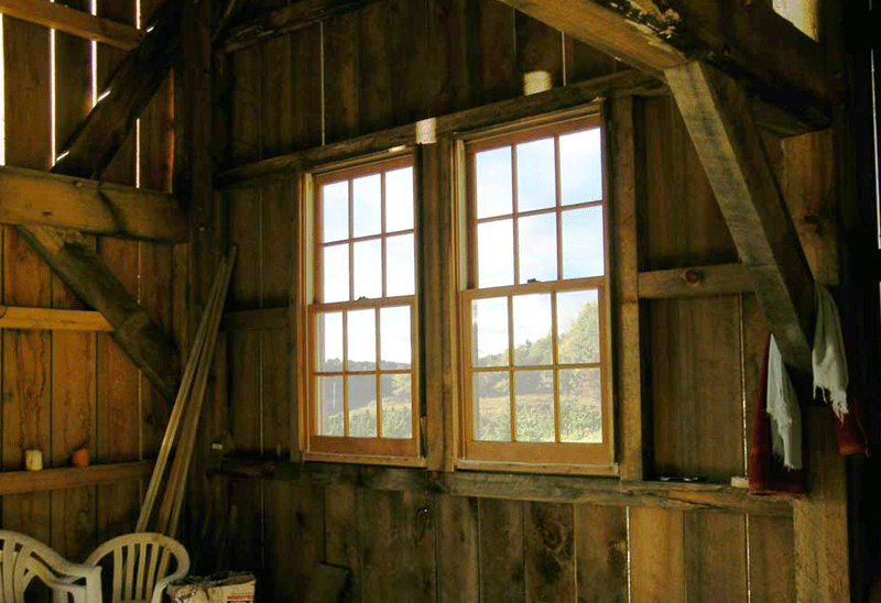 Our timber framer put up the frame, helped us add the roof boards and side boards, and we took over from there. We wanted windows that are simple and durable. Doug came up with a pretty good system.