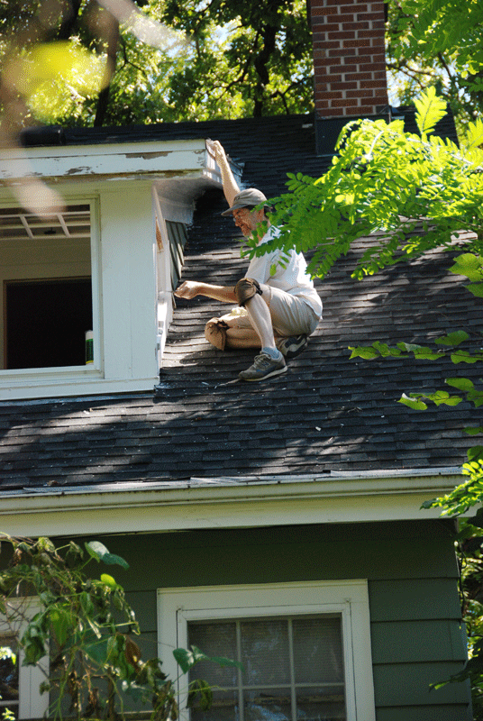 We did not paint our barn (see my post Don’t Paint — Gray is the New Green ) because it is sided with 1-inch slabs of white oak, which has weathered to a silvery gray and will not rot. But we do have to paint our house in town, which is not made of oak and has proven itself very willing to rot in more than one area.
