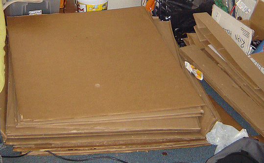 2. (carbon layer) This is the biodegradable weed barrier. Use cardboard or newspaper. Make sure there are no gaps in this covering, and make it thick. If you are using newspaper, use 6-9 sheets thick. (don’t worry about color photos. It’s usually soy ink these days). If you are using cardboard, get the biggest sheets you can find, but make sure you remove tape and staples. (If you do this in the spring, you can cut holes in the cardboard and set your plants right into them.)