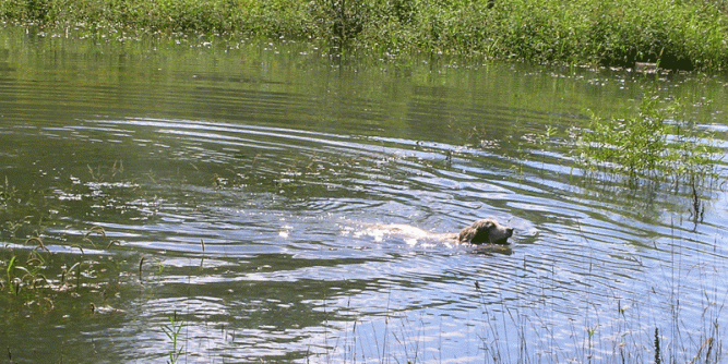 This spring, after the pond thawed, we tossed his ashes into the water. Nothing gave Tombo more joy than obeying his hard-wired directive to retrieve something from water. (His presence in that tiny pond had a huge impact, but his compulsion to leap into the pond was hard to deny.) His final entrance into his pond was the only one that didn’t fill me with ambivalence. We tossed his ashes from all his favorite entry points, and with the last handful, we both called out,