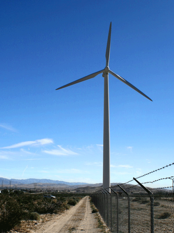 Do you ever wonder why the blades seem to be turning so slowly? They are probably spinning around once every three seconds, which looks quite leisurely from down here on the surface of the earth, but the tips of those very long blades are actually hitting 150 to 225 miles per hour. At that rate, a single turbine can generate a 1.5 megawatts of power.