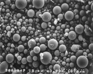 ..Fly ash particles at 2,000x magnification. Fly ash is typically finer than portland cement and lime. Fly ash consists of silt-sized particles which are generally spherical, typically ranging in size between 10 and 100 micron . These small glass spheres improve the fluidity and workability of fresh concrete.