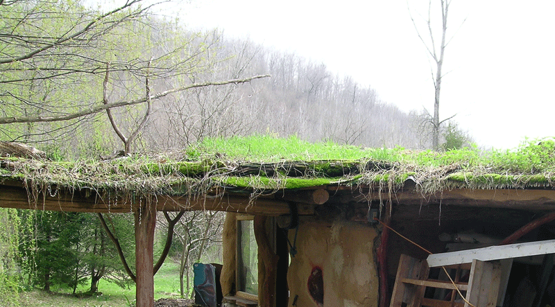 combines some benefits of green roofs with a demo of the necessary layers used in one approach to building sod roofs. One thing I’ve learned is there are almost as many ways to seal your sod as there are sod roofs.