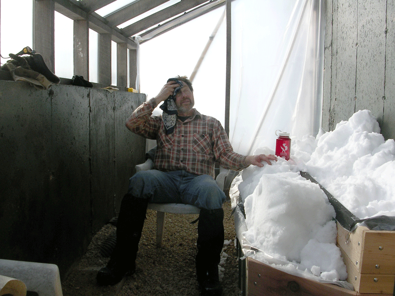 We started out by wetting the soil with melted snow. (Check out my post Watering the Greenhouse with a Shovel.)