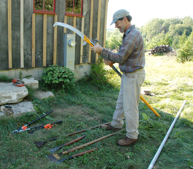 So far, I have only worked on trimming off the branches off pines and spruce for the peelers. Using our really neat hand and pole saws (see posts singing their praises: tree herders upgrade and saws-the-sequel) makes the job go easier.