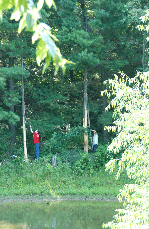 Monday through Wednesday there were from six to nine people selecting and prepping the trees that will hold up the house we build next summer.