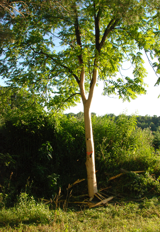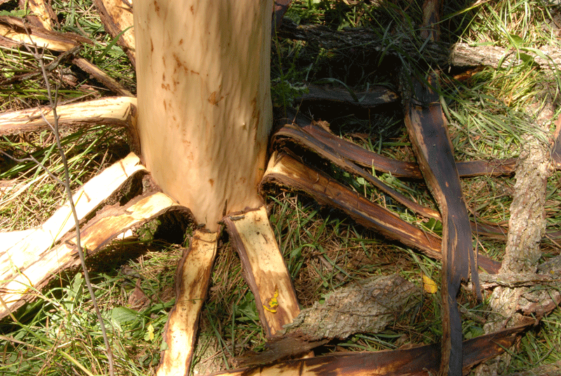 The peeling process is like tree girdling on steroids. Once the complete circumference of a tree has these crucial layers removed, revealing the true wood beneath, the fate of the tree is sealed. It will continue to show a healthy flush of life above ground for the rest of the year, but below the soil, the roots will slowly die, and there will be no leafing out come spring.
