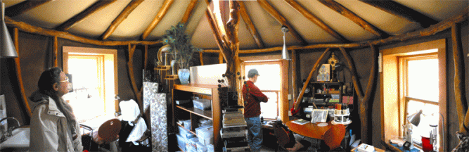 Both circular rooms are topped with a tractor tire rim and a sky light.
