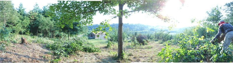 Now we will dig into an even steeper par of the hill to build the foundation for the house. Since we have been researching green building, I’ve some to realize that the easiest way to make an efficient house is on a flat piece of ground. Unfortunately we don’t have any of that.