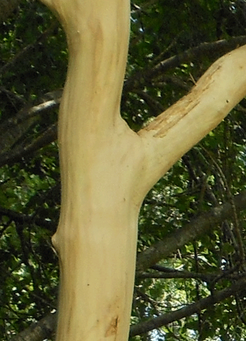 This particular test is being performed using ash trees because we are about to have a lot of dead ash trees in our part of the world. The Emerald Ash Borer is winging its way into Wisconsin. Madison alone will have more than 2,000 dead ash trees soon, and these urban trees will have to be removed. Instead of being sawed into little pieces, they could be used as building material, if the strength of their branching members can be quantified.