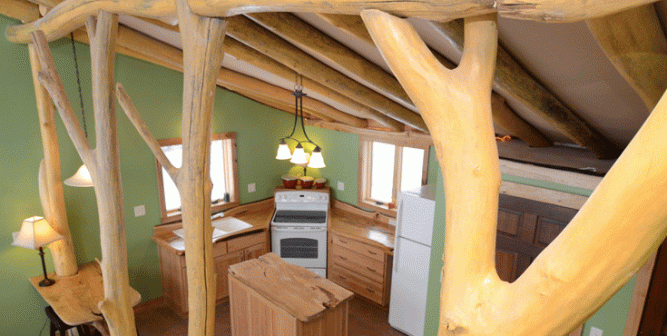 Because these trees are plenty strong to build with. They make excellent unmilled timbers and create a healthier forest by thinning. Working with small trees is efficient because there is an abundance of these smaller trees out there. New forests have as many as 1,000 stems per acre — a mature forest is more like 60 stems per acre.