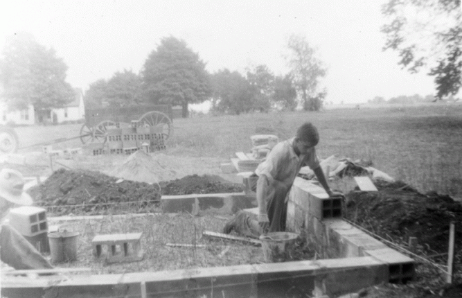 My dad laying a simple, but amazingly lasting foundation for his first house -that is still occupied, though now in the middle, rather than the edge of Monticello IL.