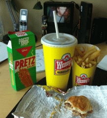 I understand this is a baconator combo with what appears to be a pretzel salad. (photo credit: http://www.flickr.com/photos/erratik/5118142369/