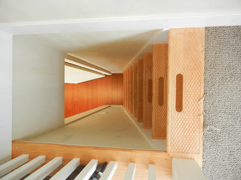 Even though our own house has moved past the design phase into the building phase, I came away with a great idea for the stairs to our loft from the loft ladder she put in this demo house.  These grip holes really made me feel secure even climbing back down.