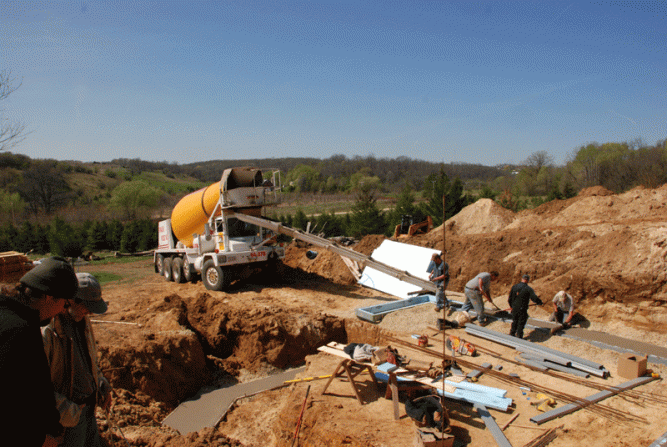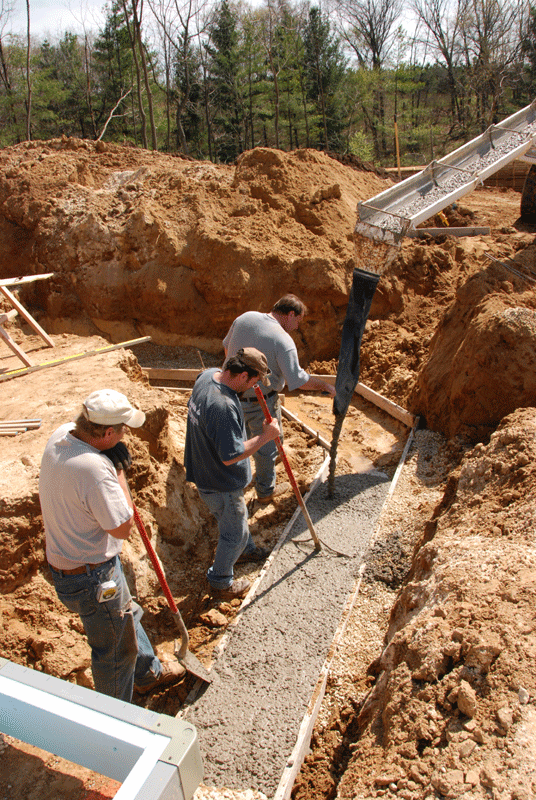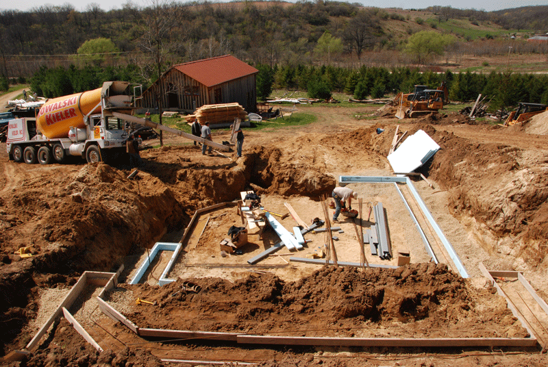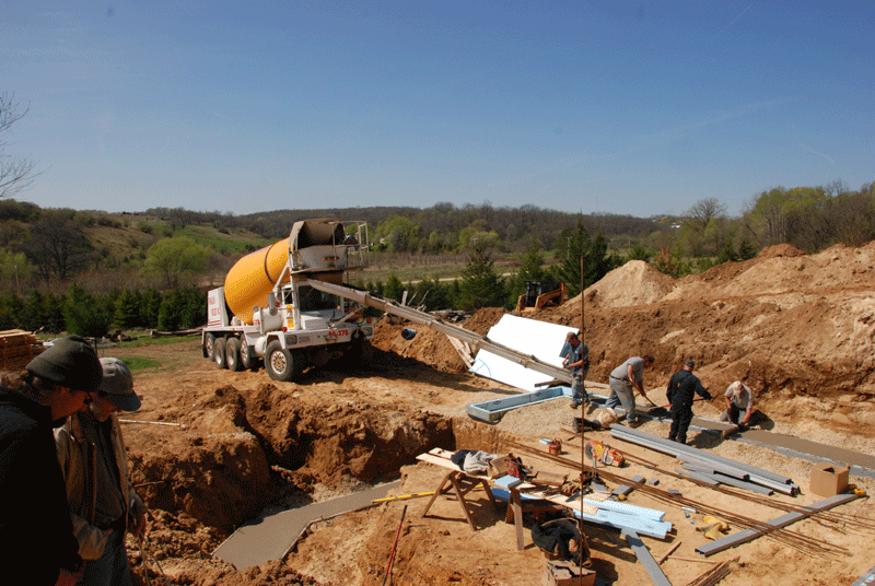 I just got back from watching the basement walls be poured today. I’ll be writing about that for my post tomorrow. Every step is an incredible thrill and often a bit of a puzzle. The intersection of our very good, but very traditional concrete craftsman and our very sustainable and exploratory architect has been a bit bumpy. It is a learning process every step of the way.