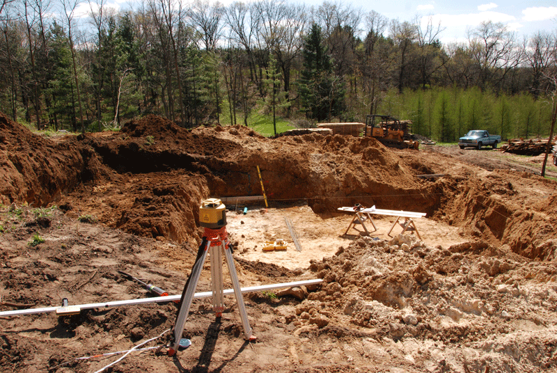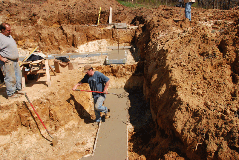 This week has been a roller coaster ride of thrills and chills. Bruce Lease dug the hole for our house and Mike Flynn set forms and poured the footings.