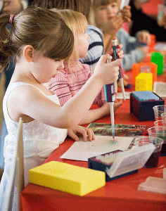 Natalie Rodenkirc participates in an activity booth explaining how DNA is isolated in a lab setting during the "Science is Fun" event at Engineering Hall, one of several activities offered during Science Expeditions 2008 held April 5, 2008, at the University of Wisconsin-Madison. Photo by: Bryce Richter Photo credit: UW-Madison, University Communications