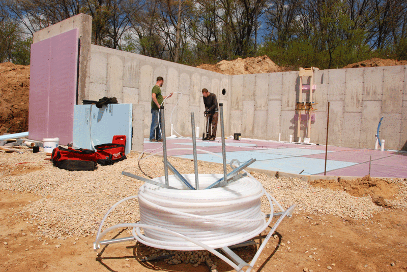 But what is going to look like a Clark Kent concrete slab will actually be a Superman high performance radiant floor that will maintain comfortable temperatures in the rooms above it with minimal use of fossil fuels.