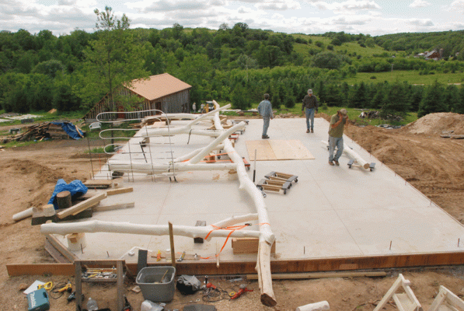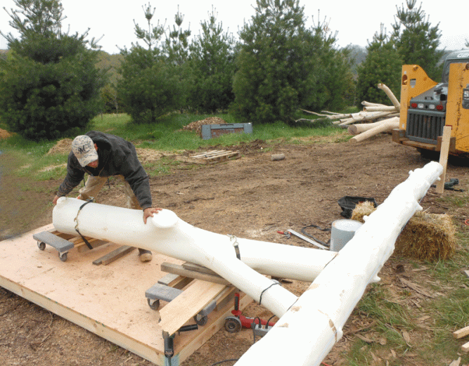 I’ve been watching them lay in orderly groupings beside the barn for months, and now finally we are almost ready to see them sketch the shape of Underhill House in the air.