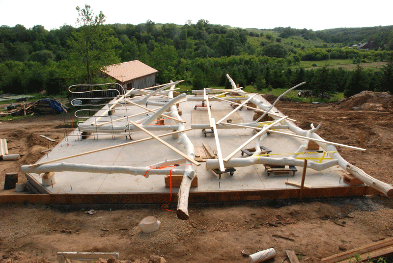 If this concept was new to Andy, you can imagine how it struck everyone else in the building process. Speculation about the purpose of our novel array of rebar and PEX tubing ran wild. Was it a retro TV antenna? How about a communications portal with the Mother Ship?