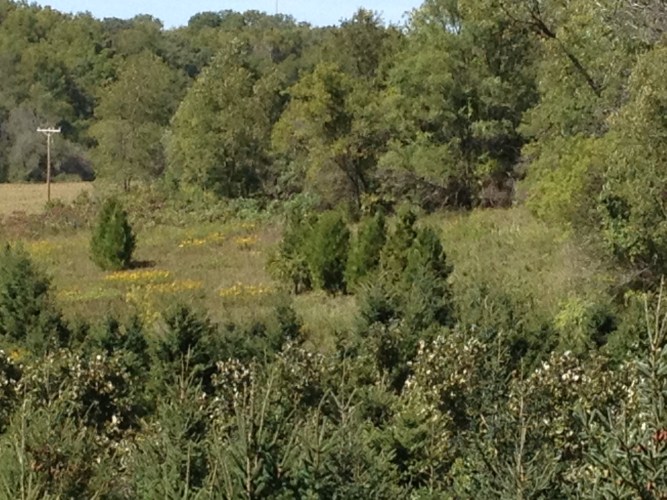 Our prospective vineyard is the clearing in the distance as seen from the end of the drain field near our house.