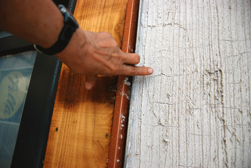 The stucco finish on Underhill House has turned into quite a testing ground. The prep work and first coats began in July (See my post Underhill House Gets Plastered part one ).