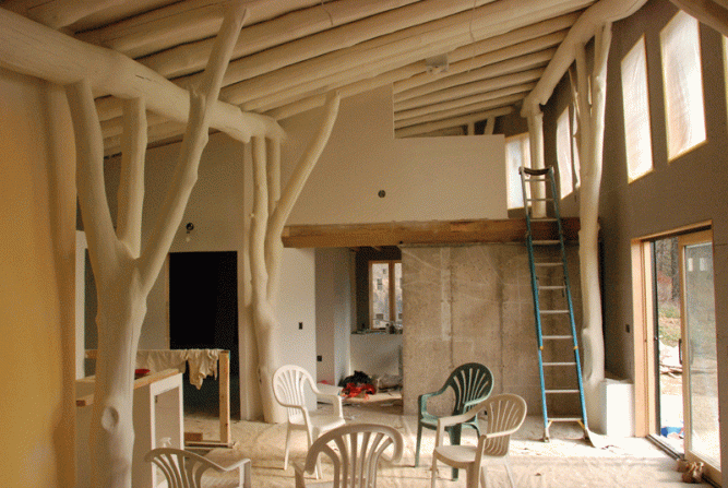 Like many aspects of building with unmilled, branching timbers, painting takes some extra thought and effort.