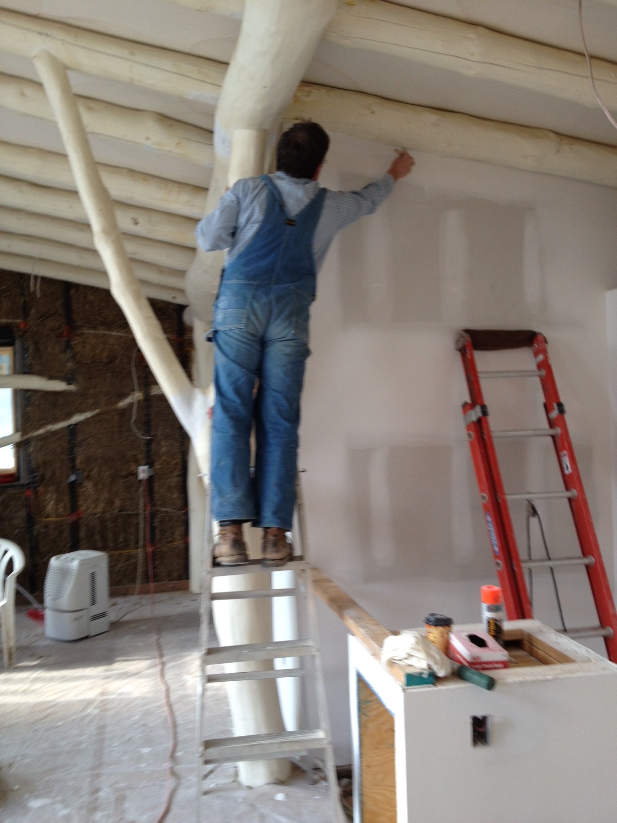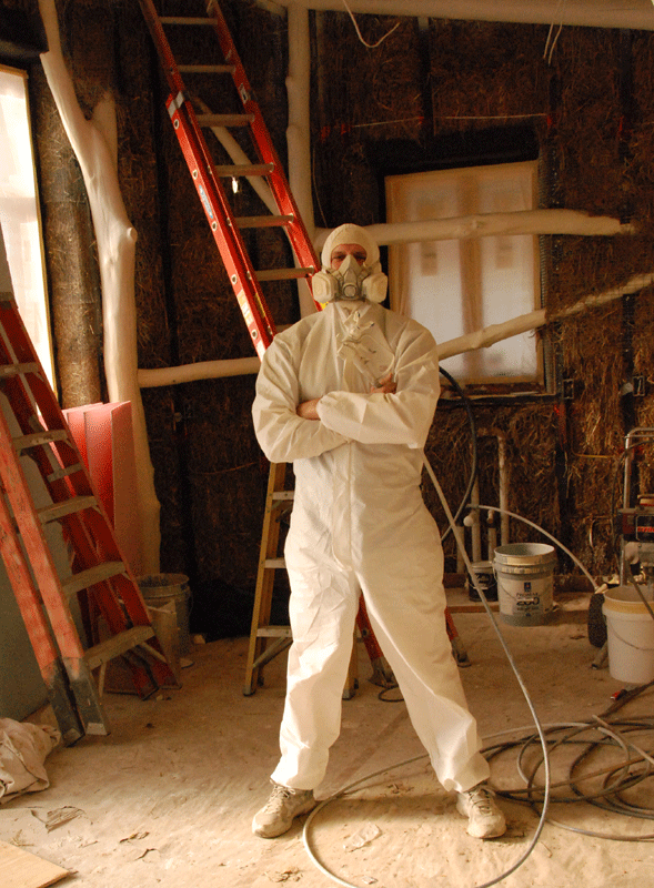 What convinced us was the comment by our plasterer, Krome Burke-Scoll of Artisan Exteriors . “If you have never used a paint sprayer (and we have not) you don’t want to learn spraying by working over your head on a scaffold.”