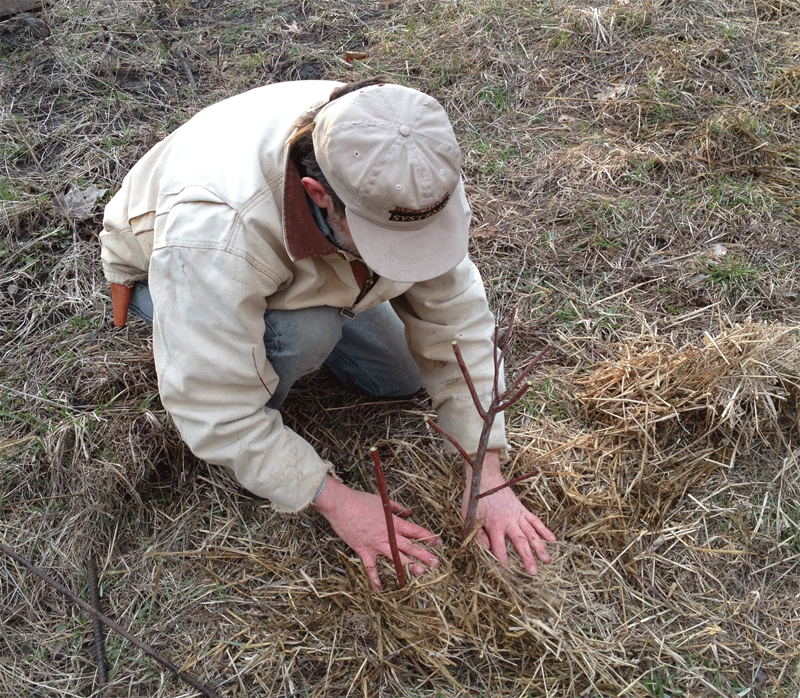 planting-red-twigThen water it and mulch it.  And keep watering every week for the first season.  Nowak suggests using twigs 1/2″ to 1-1/2″ thick.  We planted a thick and thin one at each site to see which one works best.