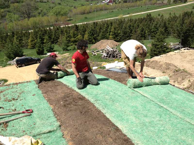 The roof wasn’t ready to plant until it was too late in the fall.  If we had put the soil on the roof without planting, it would have been blown away so it went through the winter like that.  And it worked very well at keeping in the heat!  Our passive solar and solar hot water heat system and great insulation kept the house comfy with very little need for the propane backup we have built into the system.