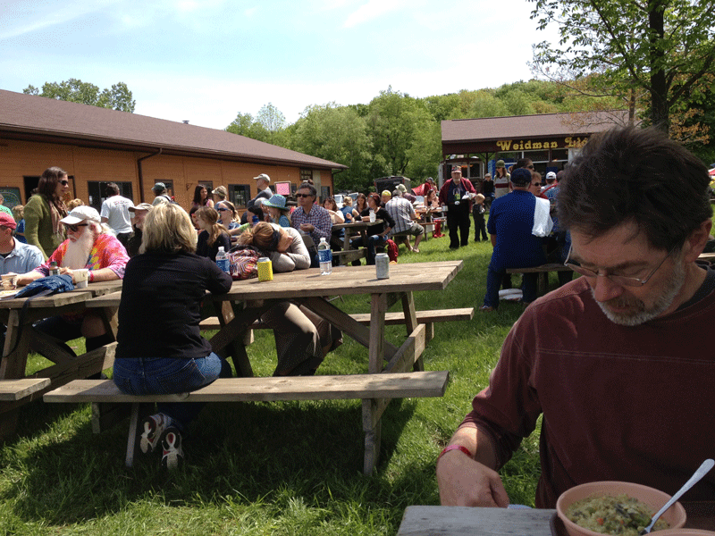 Everyone is mellow and happy to be at Wheatland. Music and conversation fill the air. Every time you sit down at the picnic tables for another meal, you leave with new friends.