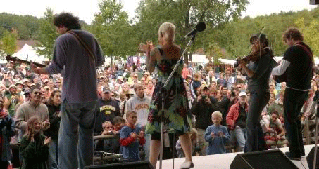 Wheatland Music Organization hosts a massive fall festival the weekend after Labor Day that draws about 15,000 happy campers to the 160 acres of rolling, wooded hills and grassy meadows. The facility has been in the making since 1986 and now has a number of buildings: the main stage, the dance pavilion, food prep building, and other amenities. In the fall people come to see the great and the up-and-coming performers in a variety of traditional music venues. At any moment concerts will be going on in many locations, the kid’s hill will be jumping with crafts and games for young Wheaties, and various tents will be hosting technique workshops taught by the main stage performers. It’s an amazing experience.