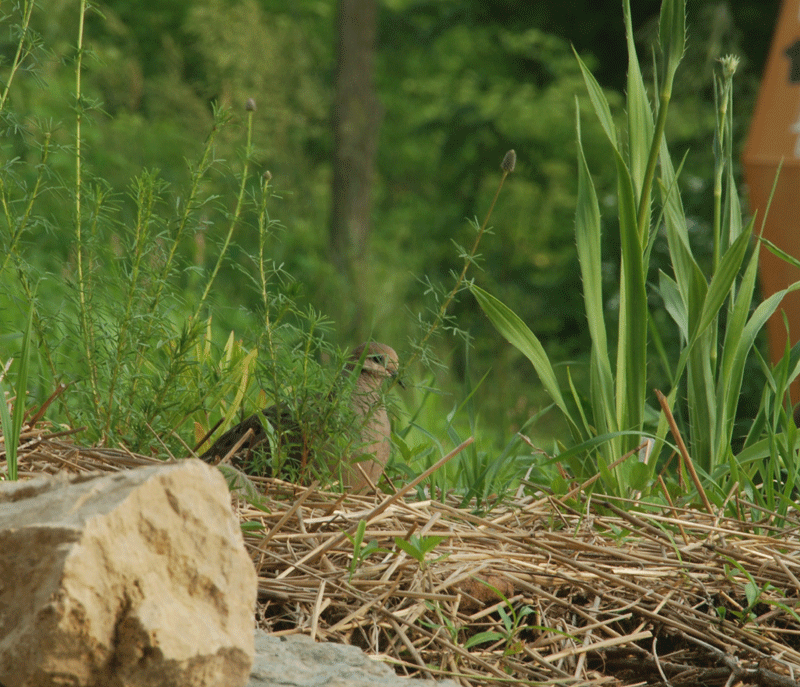 Most of our landscaping is going to be aimed at creating a native habitat for birds and insects. This spring we planted a handful of shrubs and trees to the south of the house to create a natural blind between us and our little pond. We transplanted over a dozen clumps of Redosier Dogwood that seem to be off to a good start, and we bought a few plants from the UW-Arboretum native plant sale: a Pagoda Dogwood, an American Plum, 2 Highbush Cranberries and a Chokeberry bush. These were selected to provide shelter and food for birds early and late.