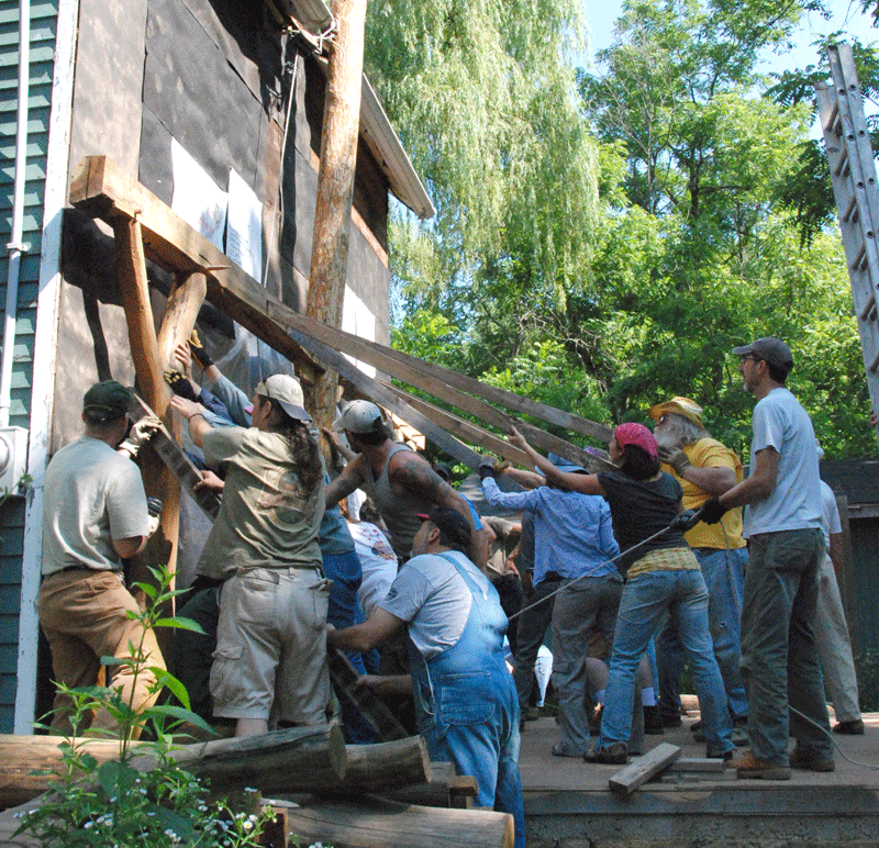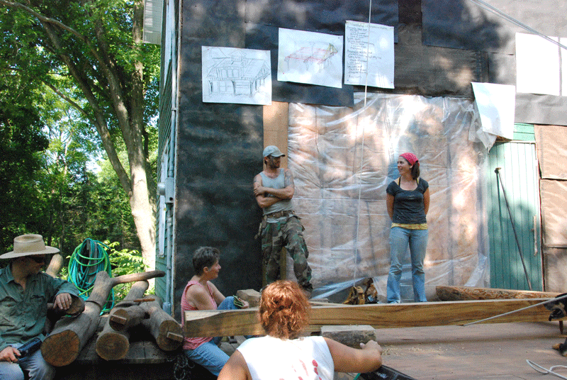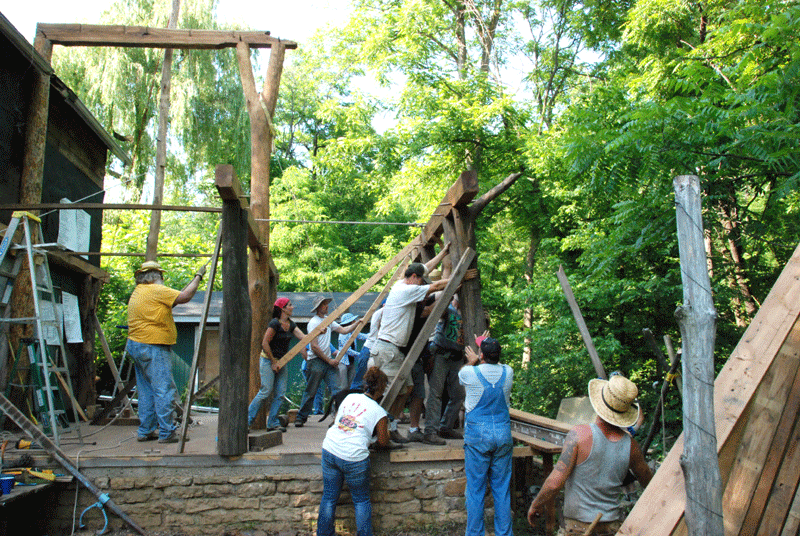 Getting together this weekend to help Prairie and his partner Lindsey raise a timber frame addition to their farmhouse was like old home week. Everyone from our project plus many more friends and relatives gathered to lend a hand.