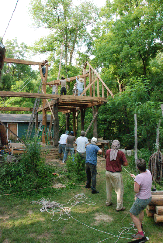 The outside will be sided with wood, and the inside will be plastered with earthen clay.  It’s so satisfying to watch an old farm house in a beautiful setting get a new lease on life, with the kind of sustainable materials and a sense of community that no doubt  built it in the first place.