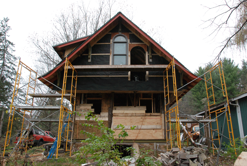 Prairie and his partner Lindsey are restoring an old farmhouse.   The back of the house proved too far gone, and they are replacing it with a new kitchen/living area topped by a sunny loft. DSC_0034
