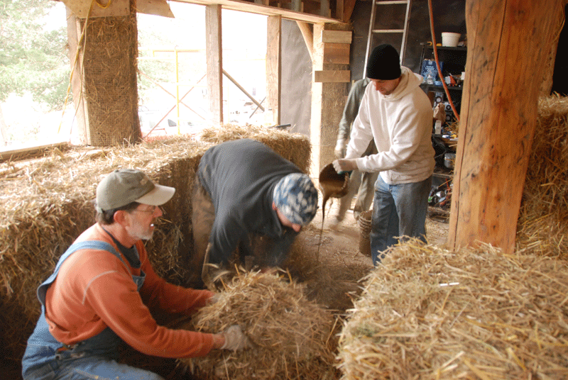 No, straw clay isn’t right for every building project. I think it works best for small structures, and ones where the builders have a lot of energy to pour into the effort. Our own place is a combo of straw bale and more common foam insulation. The foamed part of the house was done in a day by two men. It was an amazingly quick process. But even though we used castor bean oil foam, which is more green than petroleum products, I’m sure we left a much bigger carbon footprint than Prairie and Lindsey’s wall insulation will.