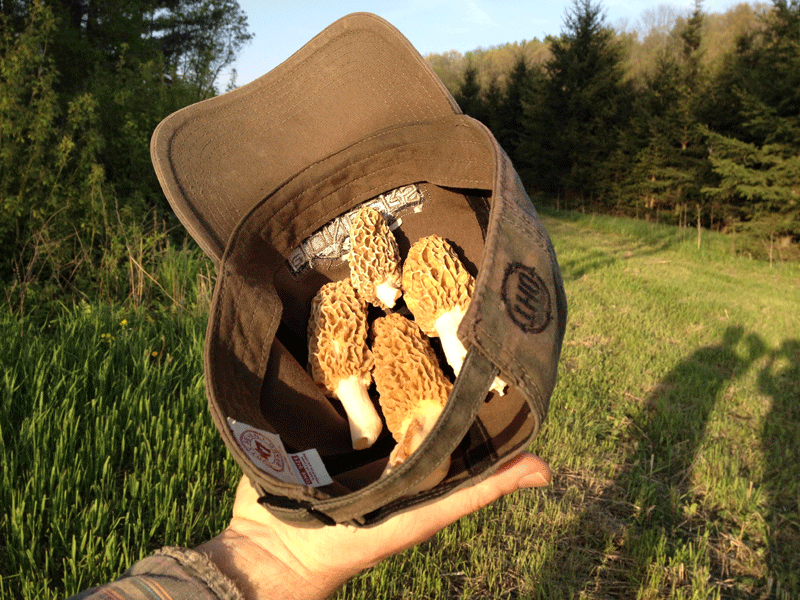 As we raked, we tuned into a different set of bird song coming from the woods around our new ag field than those that inhabit the woods near the house. A machinegun rhythm of big pileated woodpecker and the sweet and varied tunes of a brown thrasher were our soundtrack. We watched the sun rise over the house in the distance and in the evening, set behind the farm across the road. The clouds gathered and rolled past in the wide-open sky above us. And on one break in the shade along the edge of the woods, we found a hat-full of morel mushrooms, which Doug savored for several days.